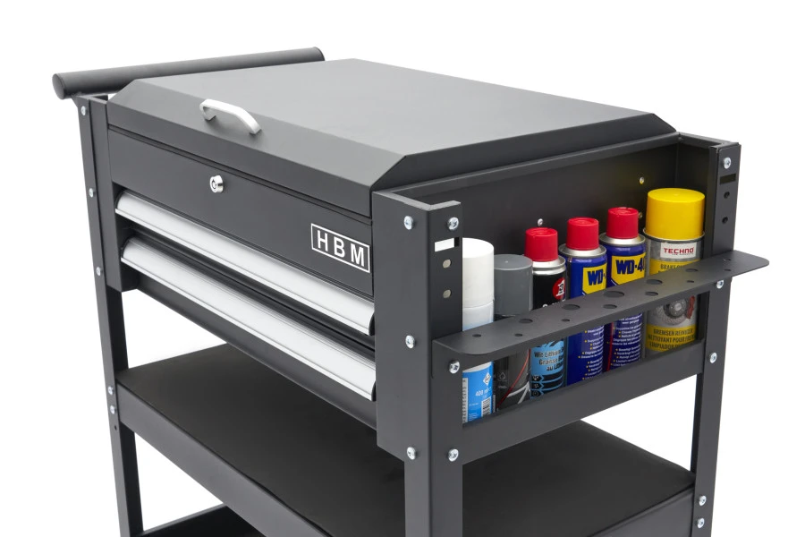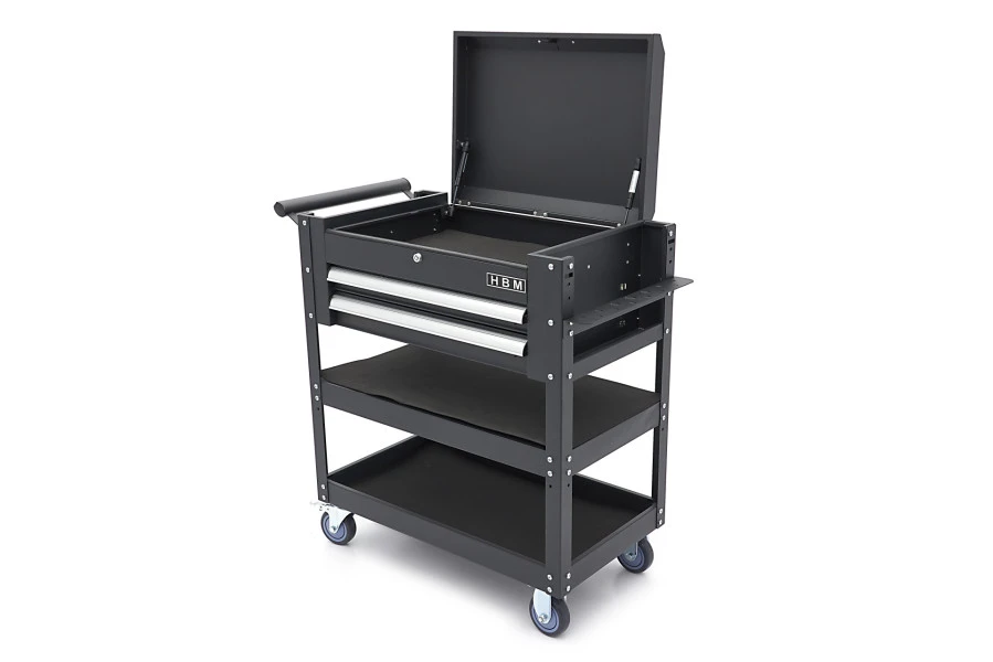 HBM 2 Laden Gereedschapswagen Met 2 Plateaus En Opbergvak – 91 Cm – Zwart
