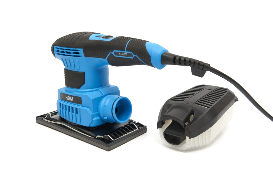 Ontdek de veelzijdigheid van de HBM 3-in-1 Multifunctionele Handpalmschuurmachine, een krachtige en handige tool voor allerlei schuurklussen. Deze schuurmachine is ontworpen voor droog schuren en is geschikt voor hout, plastic, metaal, vulmiddel en geverfde oppervlakken, afhankelijk van het gebruikte schuurpapier. Dankzij de verschillende meegeleverde schuurplaten kun je gemakkelijk hoeken, randen en moeilijk bereikbare plekken aanpakken. Een van de handige kenmerken van deze schuurmachine is de variabele snelheidsregeling, waarmee je de snelheid kunt aanpassen aan de specifieke vereisten van je schuurklus.
