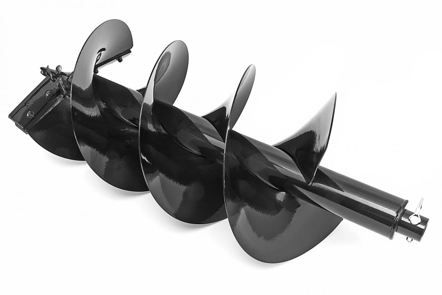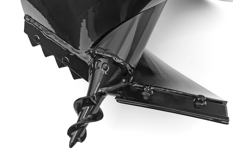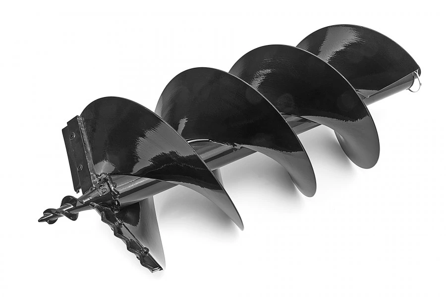 De bladen van de boorkop zijn aan de onderzijde bevestigd aan het centrale gedeelte via een metalen strook. Deze beschikt over bouten om het geheel stevig vast te zetten. Het gladde, effen design van de helix vorm maakt dat de boor zich geleidelijk aan in de ondergrond werkt. Hierdoor ontstaat er weinig frictie, waardoor de motor dus minder kracht hoeft te leveren om toch snel te boren.