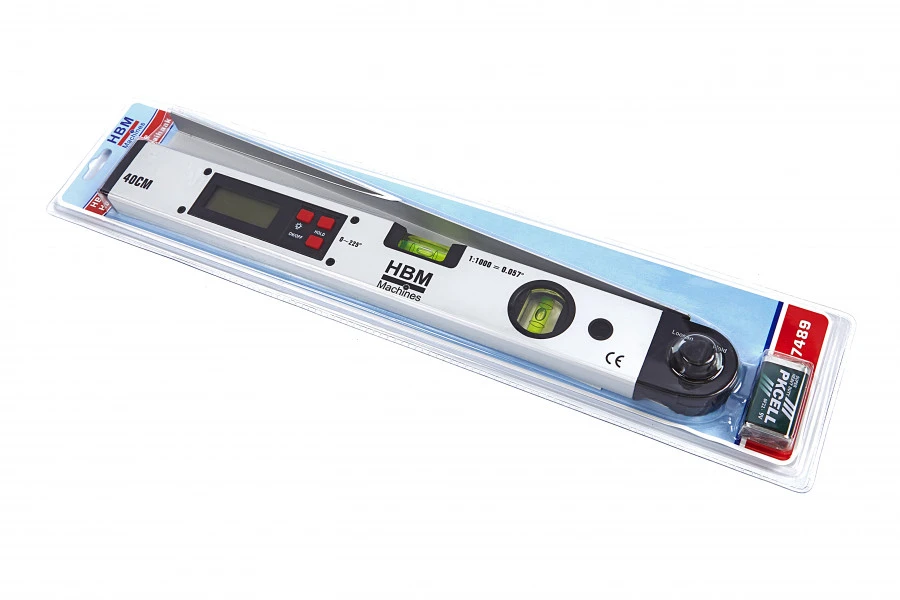 Deze digitale hoekwaterpas en zweihaak is de ultieme droom van iedere professional en hobbyist. Het model heeft een verlicht display dat je eenvoudig aan of uit kunt zetten en het model is voorzien van een hold functie. Daarnaast wordt de digitale hoekwaterpas en zweihaak geleverd inclusief 9 Volt batterij, zodat je direct aan de slag kunt gaan met deze erg veelzijdige tool. De totale afmeting, als de digitale hoekwaterpas en zweihaak in is geklapt, bedraagt 415 x 20 x 50 mm.