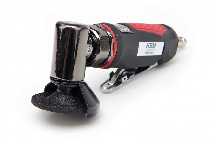 Deze HBM 62,5 mm Carrosserie Slijpmachine wordt standaard geleverd inclusief een slijpschijf en wisselgereedschap. De slijpmachine heeft een gewicht van 550 gram en de diameter van de slijpschijf bedraagt 50 millimeter. Het model heeft een onbelast toerental van 15000 O/min en een luchtverbruik van 185 L/min. Als je regelmatig aan de slag gaat met het uitvoeren van licht slijpwerk, voor het verwijderen van roest en voor het bijwerken van lasnaden, mag dit model niet ontbreken bij jou in de werkplaats. De machine sluit je in een paar seconden aan op een compressorslang.