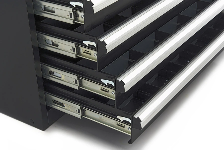 Dankzij deze gereedschapskast is het opbergen van verschillende soorten tools en materialen geen enkele uitdaging meer. De kast heeft een professionele uitstraling door zijn zwarte kleur, maar is daarbij ook erg functioneel. De verschillende lades bieden meer dan voldoende ruimte voor kleinere en iets grotere materialen, gereedschap en onderdelen. De kast is te combineren met andere gereedschapskasten of los te plaatsen.
