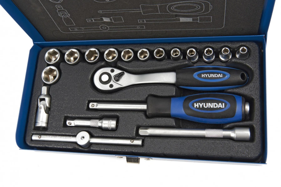 Met de Hyundai professionele ¼” gereedschap set 20-delig heb je altijd het juiste gereedschap in huis. De set wordt geleverd in een metalen koffer, waardoor je al je gereedschap altijd netjes bij elkaar hebt en gemakkelijk terug kan vinden. De set is vooral geschikt voor kleine montage werkzaamheden en reparaties aan voertuigen en machines.